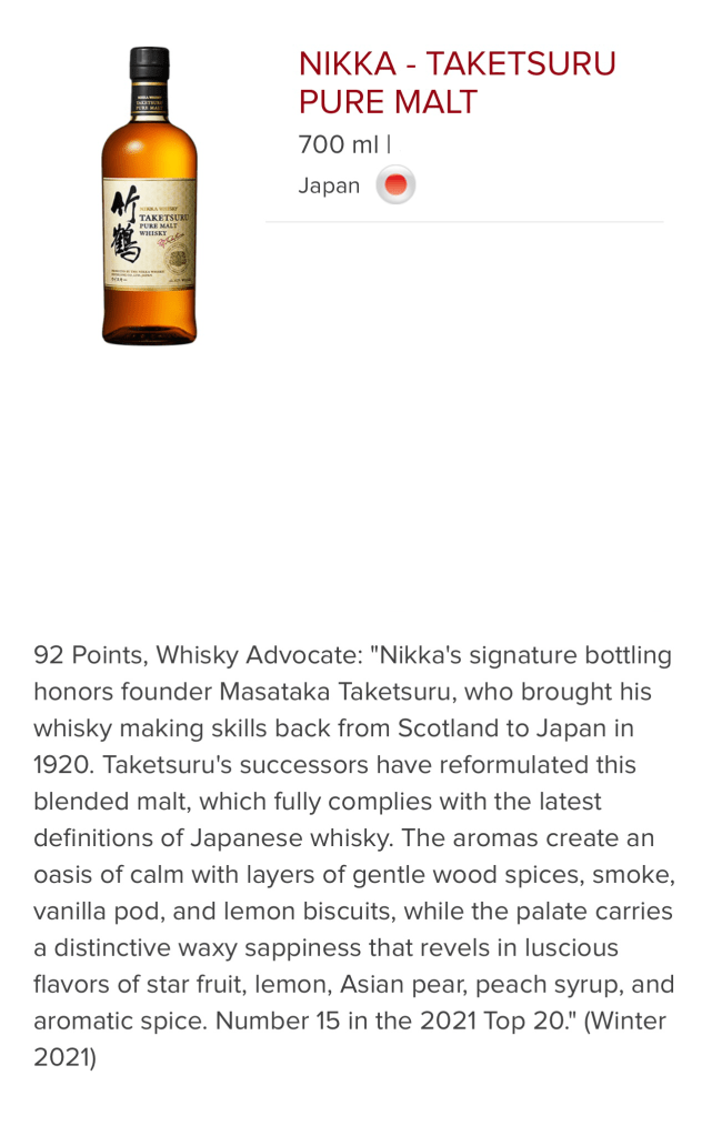 NIKKA 竹鶴 – TAKETSURU PURE MALT