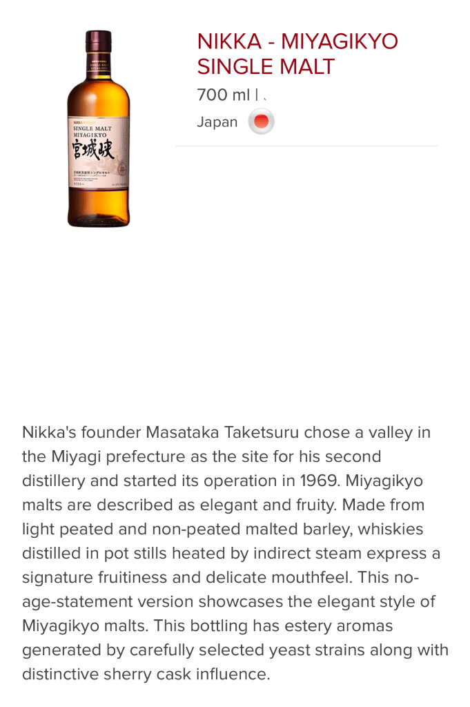 NIKKA 宮城峡 – MIYAGIKYO SINGLE MALT
