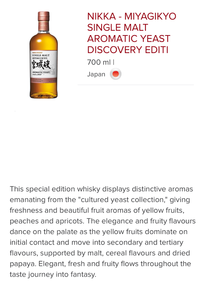 NIKKA 宮城峡 – MIYAGIKYO SINGLE MALT AROMATIC YEAST DISCOVERY EDITION